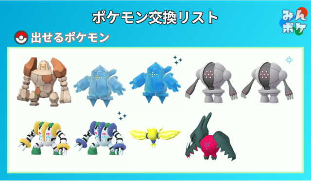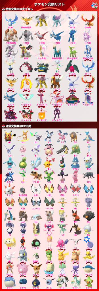 PL15以下のサンダー、スイクン、ライコウ、ラティオス、ラティアス、レジロック、ホウオウ同士も交換可能