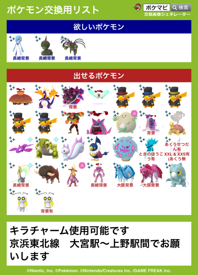 交換対象はポケモン同士のみとし、金銭やプロモーションコードなどポケモン以外の物やサービスを含めることを禁止します。投稿内容に都道府県を含めることで地域検索にヒットしやすくなります。