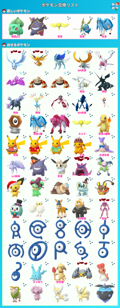 ポケモンGOでポケモンの交換相手を検索・募集するための掲示板です。