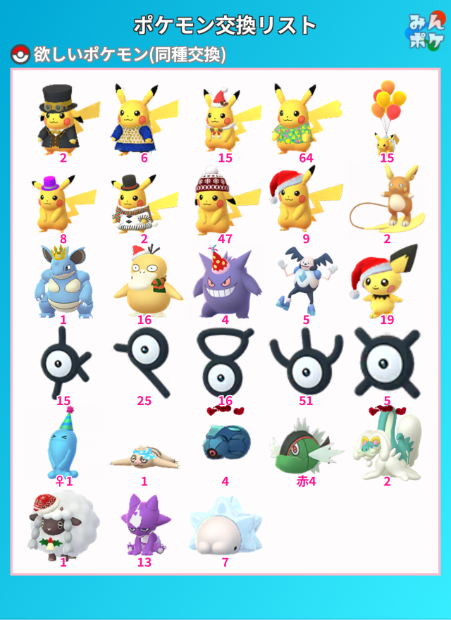 詳細:キラ率アップなので交換如何ですか?コスポケやアンノーン、レア系のキラ💯狙いで100前後交換宜しくお願いします!