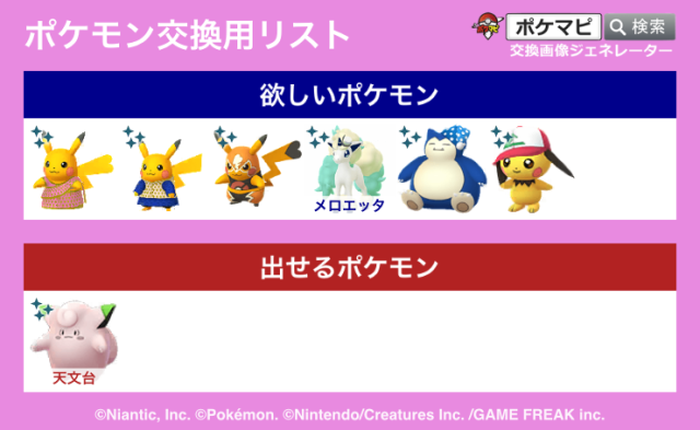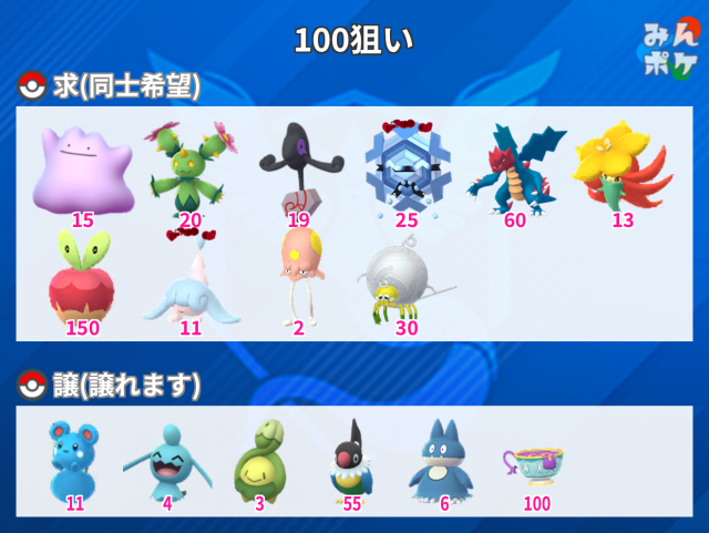交換対象はポケモン同士のみとし、金銭やプロモーションコードなどポケモン以外の物やサービスを含めることを禁止します。投稿内容に都道府県を含めることで地域検索にヒットしやすくなります。
