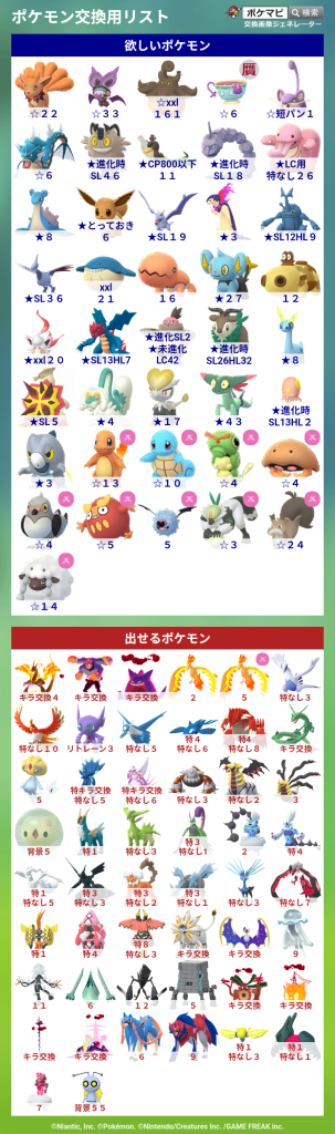 ポケモンGOでポケモンの交換相手を検索・募集するための掲示板です。