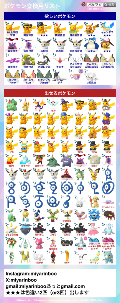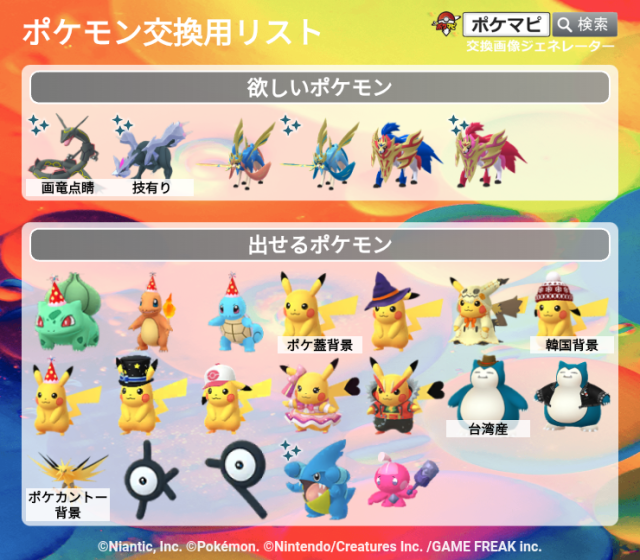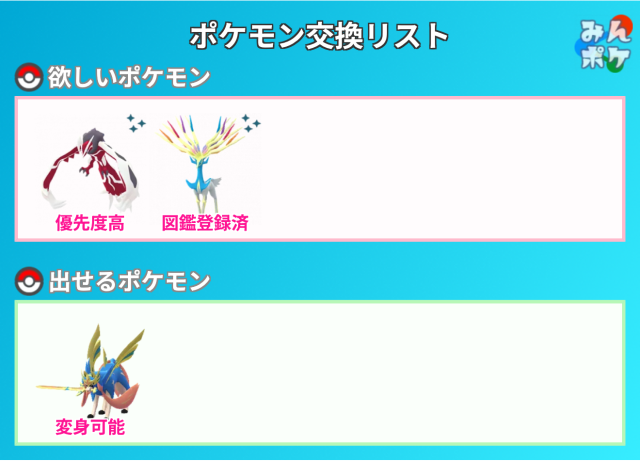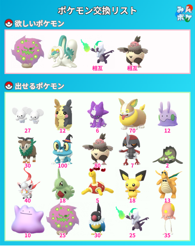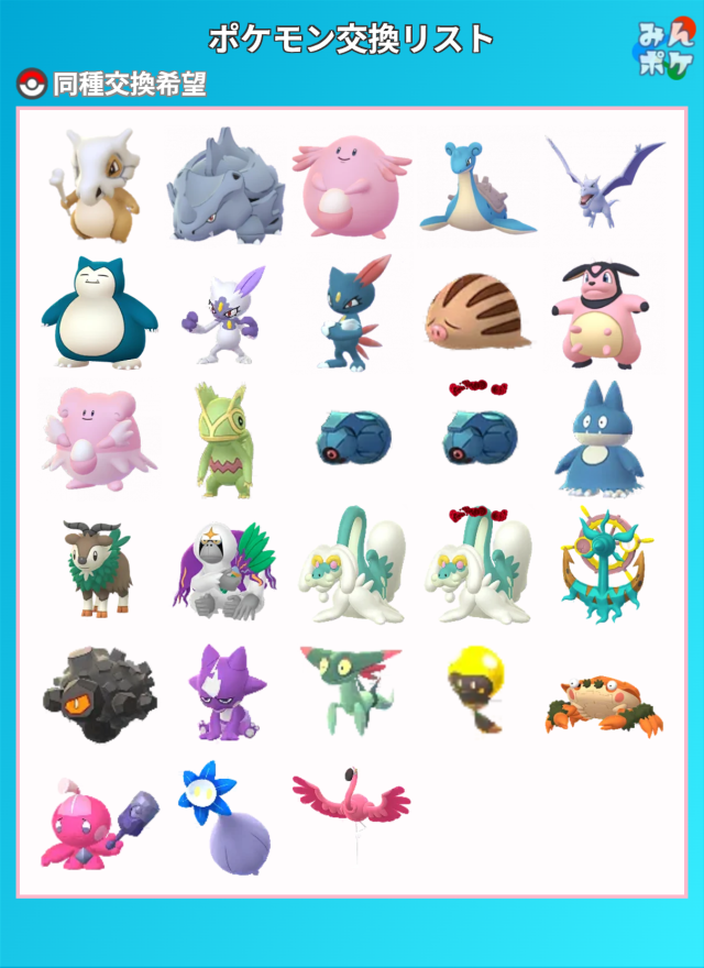 交換対象はポケモン同士のみとし、金銭やプロモーションコードなどポケモン以外の物やサービスを含めることを禁止します。投稿内容に都道府県を含めることで地域検索にヒットしやすくなります。