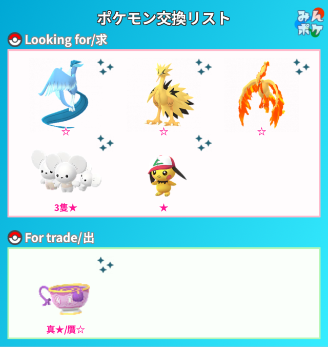 ポケモンGOでポケモンの交換相手を検索・募集するための掲示板です。