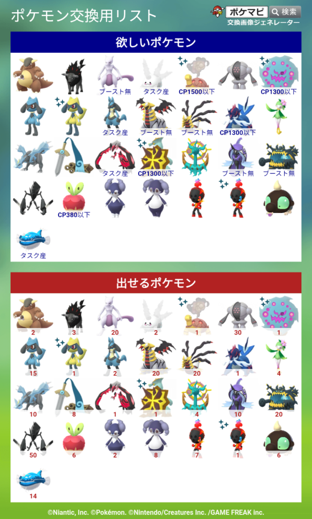 ポケモンGOでポケモンの交換相手を検索・募集するための掲示板です。