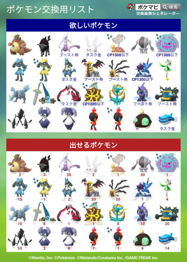 交換希望場所:新宿ポケモン広場、名古屋駅
