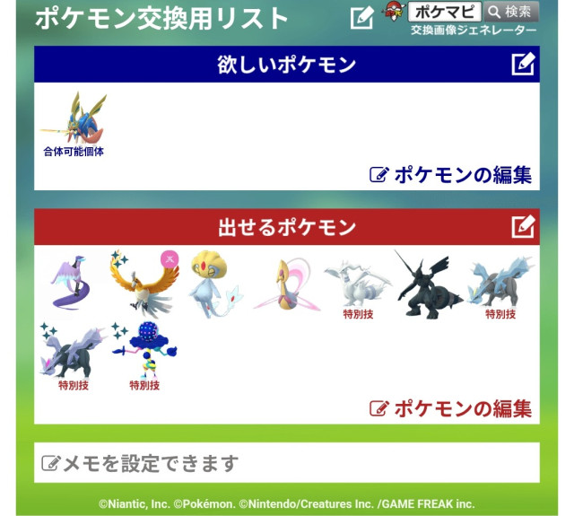 ポケモンGOでポケモンの交換相手を検索・募集するための掲示板です。