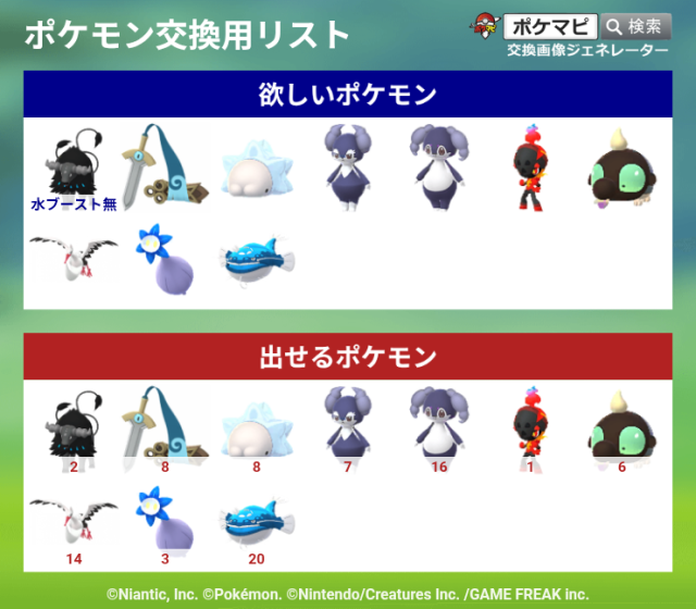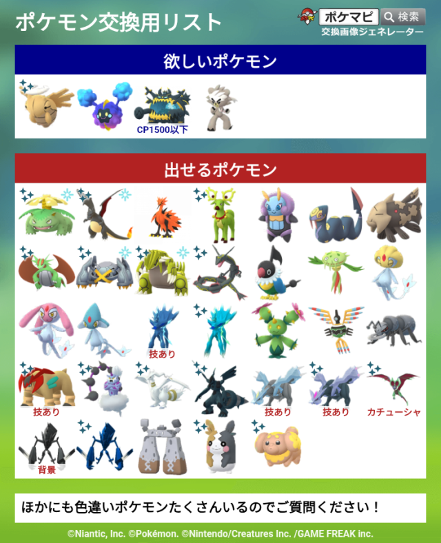 交換対象はポケモン同士のみとし、金銭やプロモーションコードなどポケモン以外の物やサービスを含めることを禁止します。投稿内容に都道府県を含めることで地域検索にヒットしやすくなります。