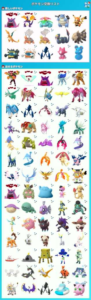 ポケモンGOでポケモンの交換相手を検索・募集するための掲示板です。