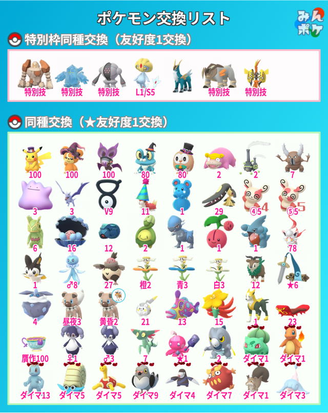 ポケモン(求):100体(+特別1)同種交換