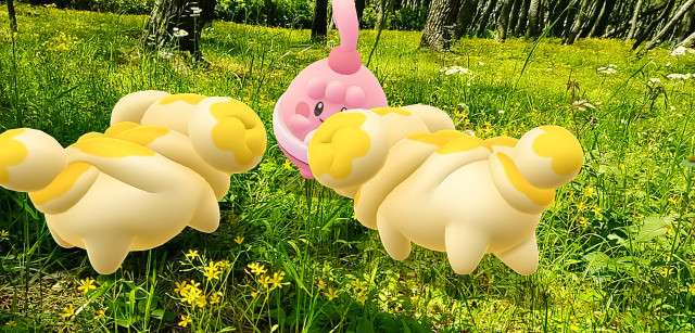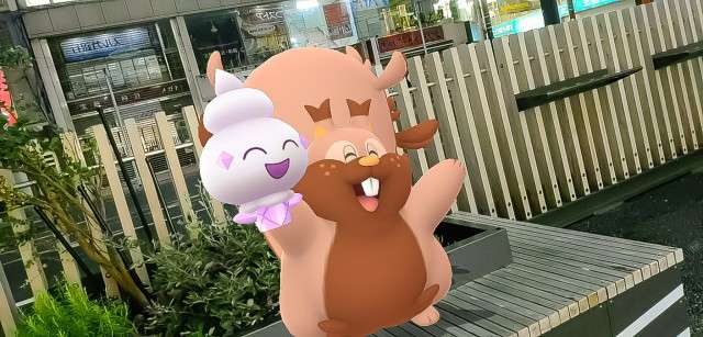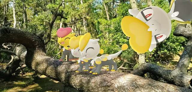 初日は色違い探しメイン、2日目はレイドとパチリス探しで手一杯でした。熱くなるスマホと電池量との戦いもあるので、写真向けの背景探しはちょっとテキトーに(;´∀`)