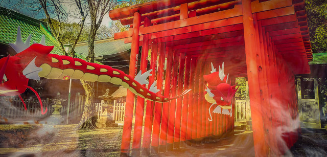 WJdWFFA様;「映え」で有名な名古屋の神社の一角でした。撮影用に和傘とか刀(尻尾で隠れています)も準備されていました。コスプレとかして撮影すると楽しそうです(・∀・)