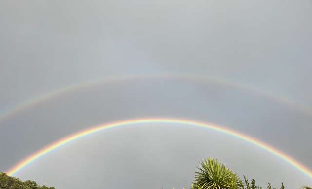 Qpさん、とっても寒いです!今日は何度も雹が降りました。昨日の朝は、虹でスタートしました。