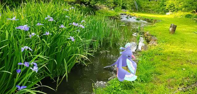 WJdWFFA様;この舞台だとまいまいさんしか思い浮かびませんでした。水中&開花時期や葉の形からカキツバタと判断しましたが、花の模様がちょっと違うような....(;´∀`)