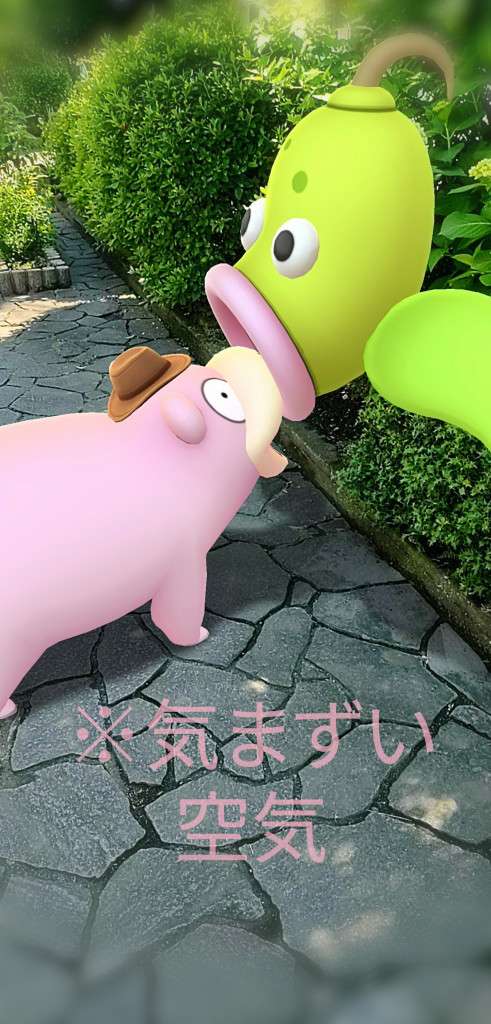食べちゃってる!食べちゃったけど仲良し😆 ヤドンさんの英語名、スローポークなんですけど、悪口だよね。