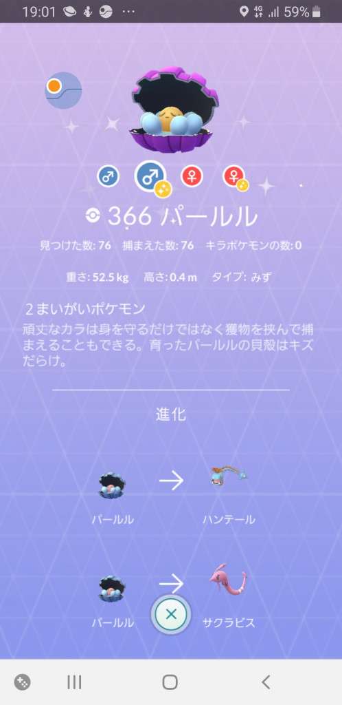 最初に捕まえたパールルの色違い調査