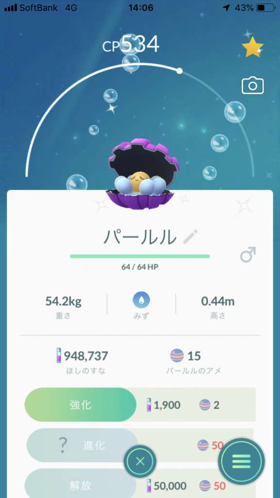 最後に捕まえたパールルの色違い調査