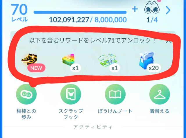 レベル毎の必要XP・報酬
