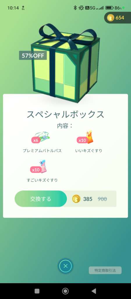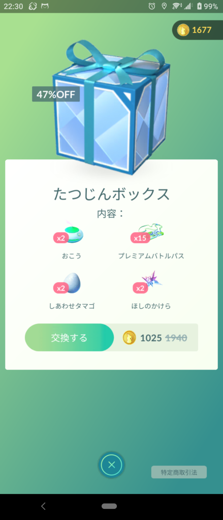 先日このボックスを買いそびれて後悔したので、今日また販売していたのを見てすぐ買いました。プレパス1枚あたり約53コインなので最安値だと思います。