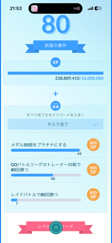 - XPやバッジ数などの達成状況報告