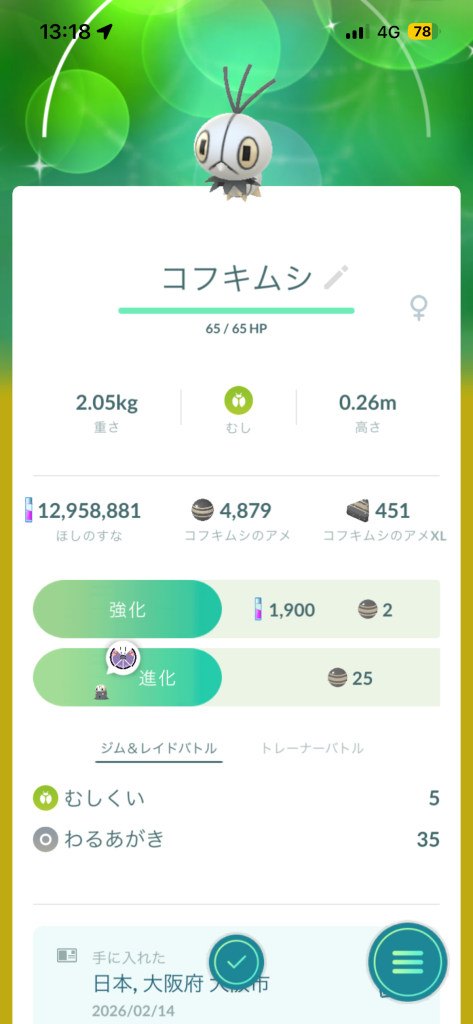- ポケモンの捕獲報告
