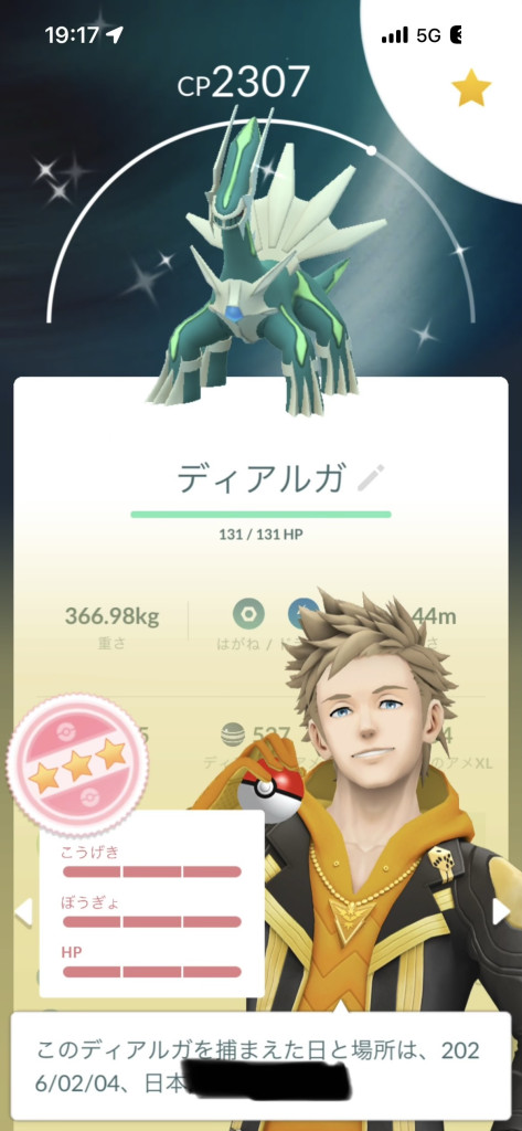 パルキアの色違いゲットだぜ!!!!!
