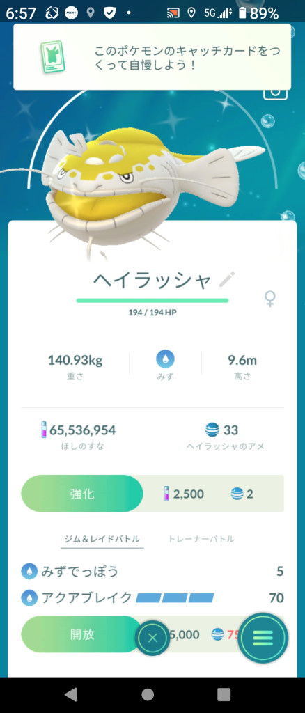 ポケモンの捕獲報告