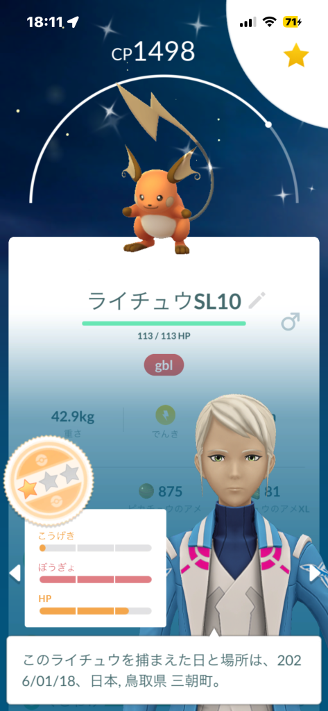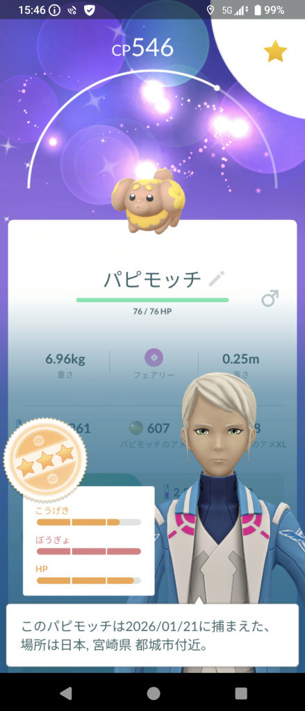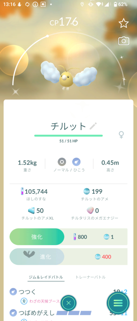 ルート検索したらはじめて色違いチルットに遭遇
