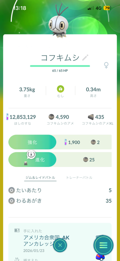 • ポケモンの捕獲報告