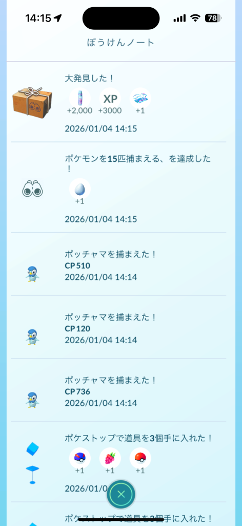 ポケモンの捕獲報告