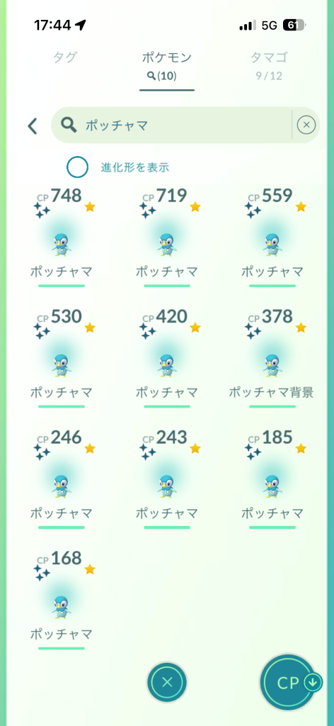 入手別最低個体値一覧