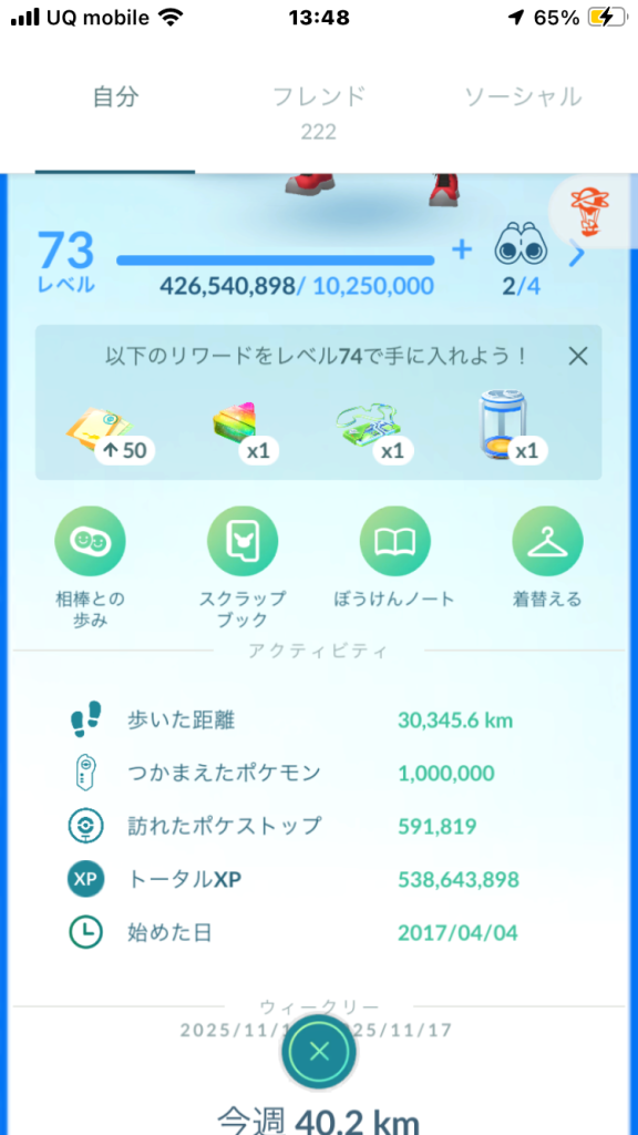 - XPやバッジ数などの達成状況報告