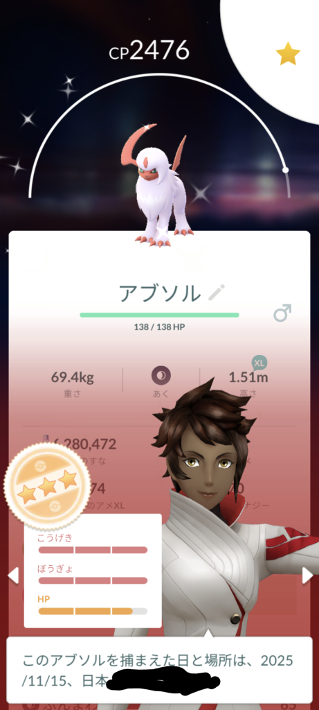 強いアブソルの色違い出たぜ(昨日)