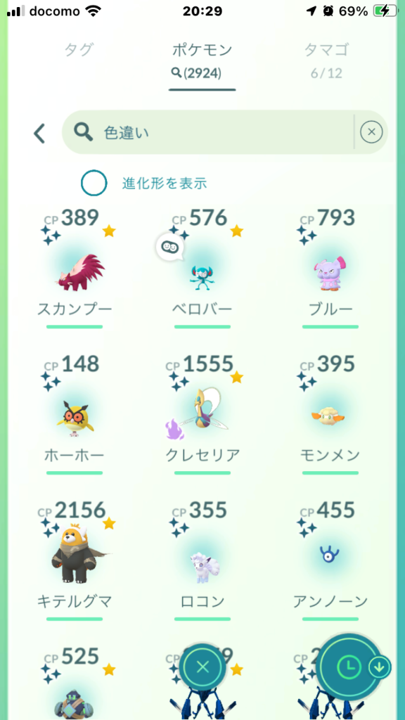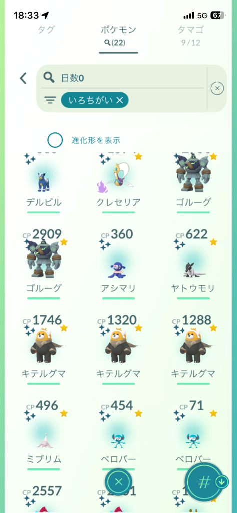 今回の目玉のミブリム、ベロバー、アンノーンW、キテルグマ出てくれたし明日はダークライに集中出来そう(キテルグマは一体色背景)