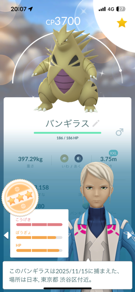 今日はもう1番狙ってた色違いXXL高個体バンギラスが出てくれた!