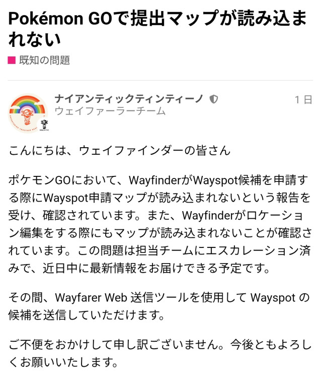 | Wayfarer板 | ルート板 | レイド招待板 |