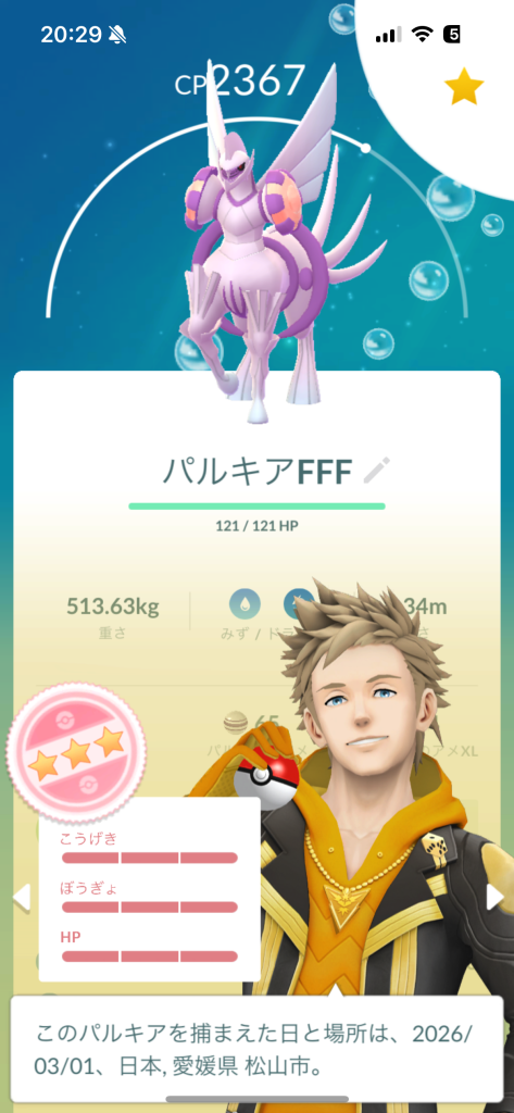 GBl視点で言うと、だいもんじ型も使えるけど、来シーズンでランドロス、グラードン、カイオーガの数が増えることを考えると、Oパルキアの技構成はアクアテール、あくうせつだん型が安定だと思います!ヒスイツアーでだいしらたまが実装されればあくうせつだんの習得も可能になると思うので、今はボックスで寝かせておくのがおすすめです