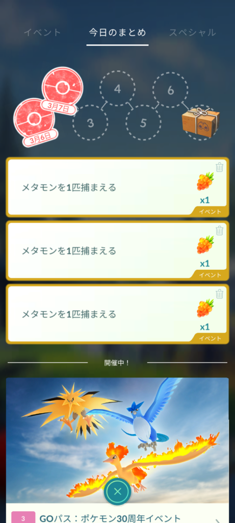 ちなみに、私もメタモンタスクよく出るけど、土曜日はすぐ捨てたよ。理由は、メタモンになるかも?以外の他のポケモンばかり捕まえているみたいなので、というのと、その報酬よりふしぎなアメのほうが自分が欲しい報酬だからね