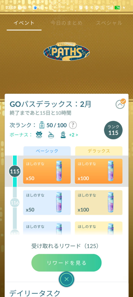 今時点の私のランクがこれ。ちなみにデラックス+10付きでタスクの取りこぼしはないはず。