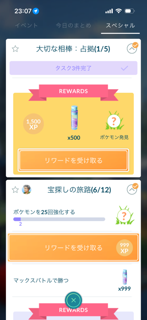 今回のスペシャルリサーチ『大切な相棒:占拠』のタスクって、うけとれないんですが、何かを進めないと受け取れませんか?ちなみに友達は同じタスクが未達成でしたが、タスクを受け取れてました。