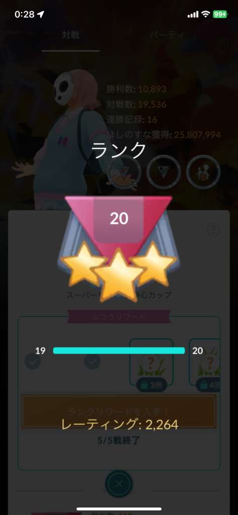 闘争心カップでわりと勝てていましたが、かけじくカップになった途端に3勝12敗のスタート。パーティー見直しです。