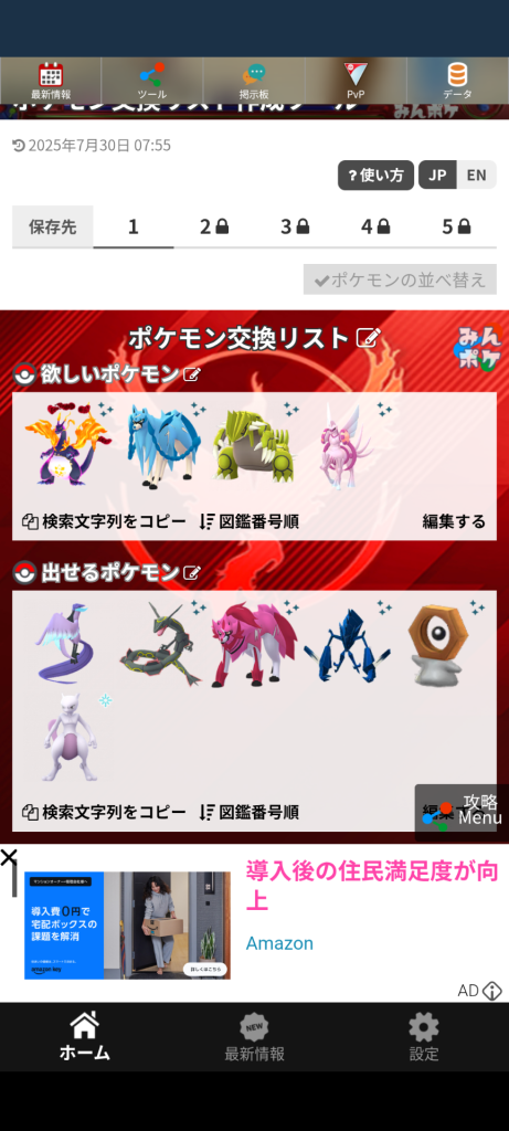 自身が報告した結果は、マイページにも表示されるため、参加したイベントの捕獲履歴として活用することができます。