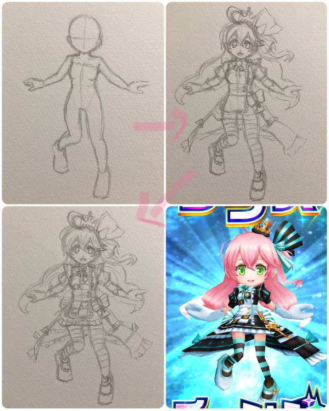 参考にするのはイラストではなく実際の人間の骨格写真が多いです。服だけは描きたいキャラクターを参考にします。