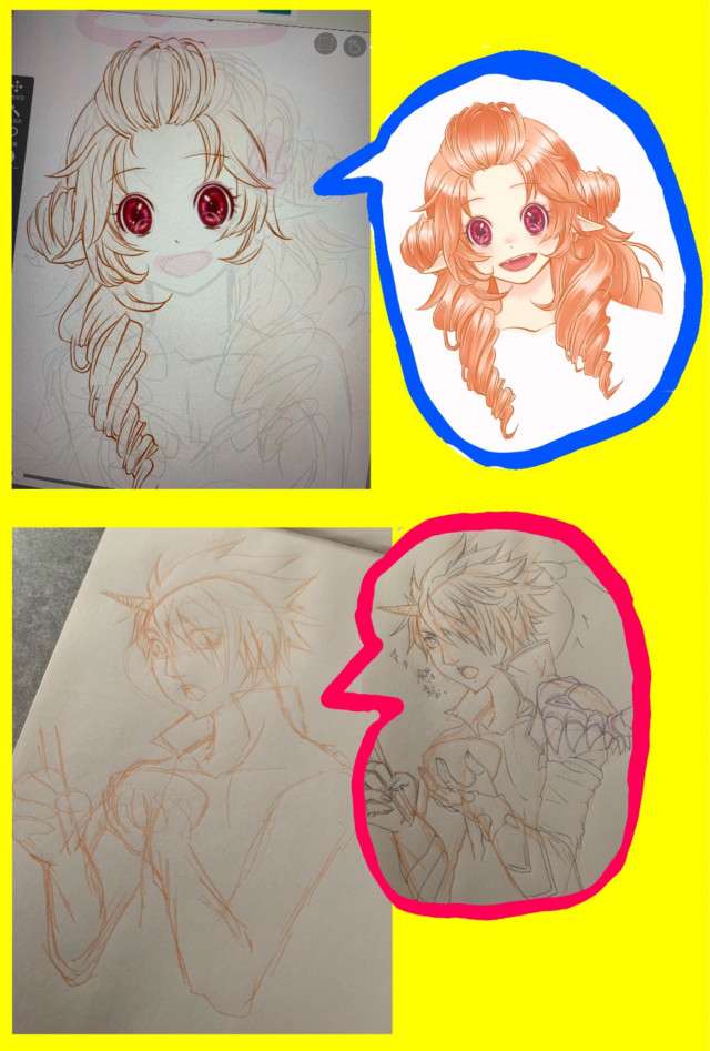 デジタルも下書き描いて、レイヤー変えて、薄く表示させて描き描きしてます。