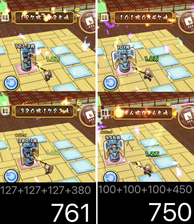スキル特化はクリティカル時3倍、会心ダメ特化は4.5〜5倍だった