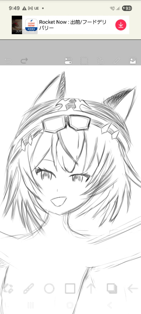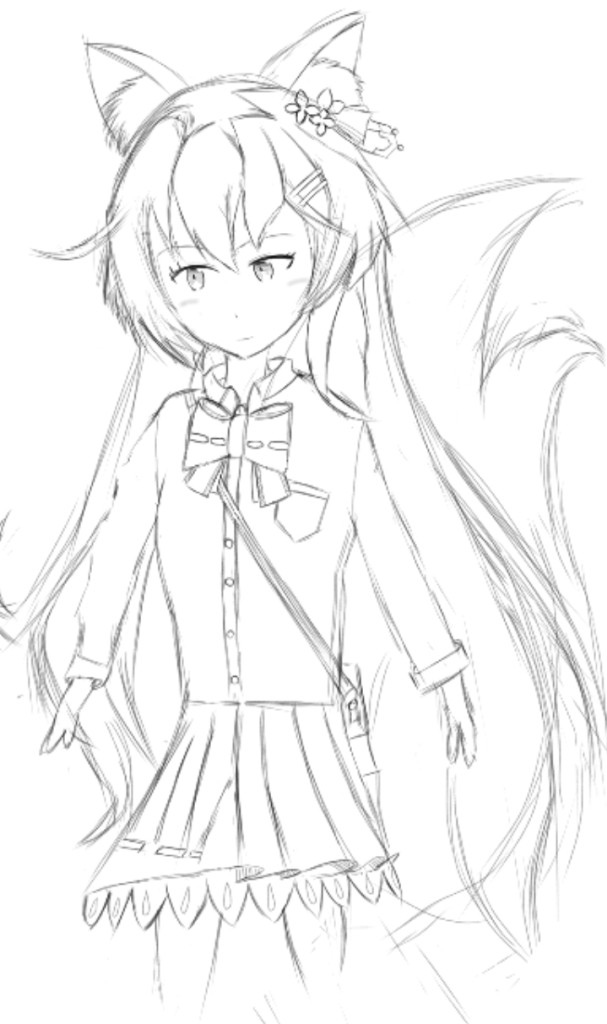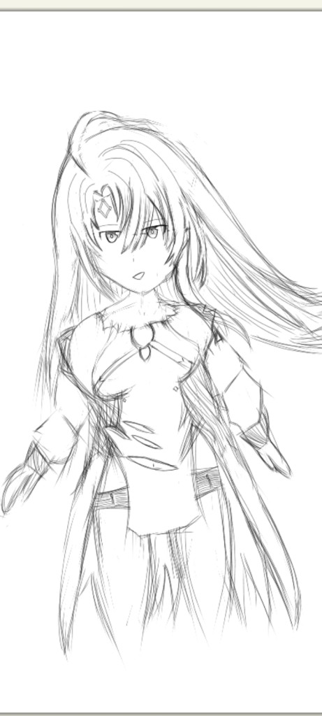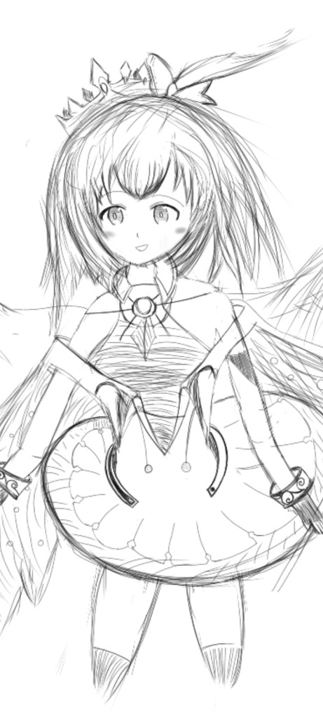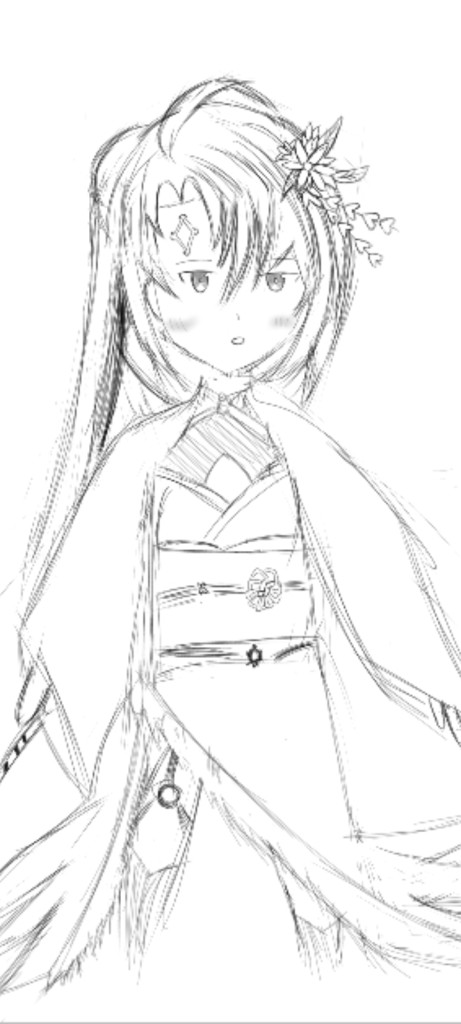多分見た感じスマホの指描きかもしれないけど、画像編集ソフト使えるなら公式イラストを線画抽出して参考にするといい。画風は個人の自由だから変えなくていい。
