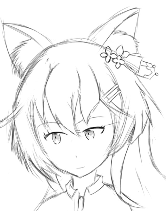 白黒だけで描くとしても透明っぽい所(水着セルピナの服みたいな所)の表し方もチャンと考えて描いた方がいい。後は清書じゃなくても線はちゃんと絞って。細かい所も描こうって意志は伝わるんだけど、迷い線が多いと思う。そのせいでコリンの後ろ髪としっぽの境目がわかりずらい。
