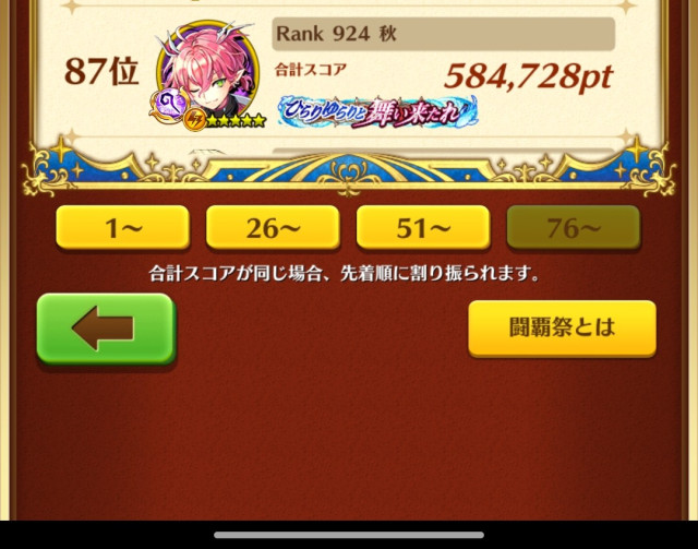 前回は50位以内に入ったけど今回は圏外ですわ笑