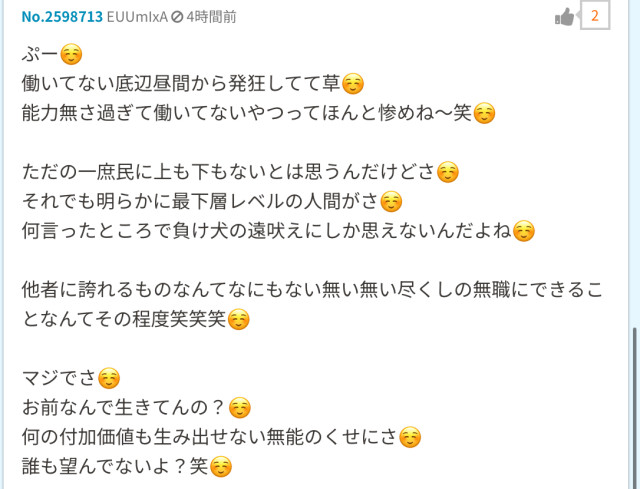 昨日誰かとやり合ってたみたいだけどキレ具合からして相当痛いところ突かれたんだろな