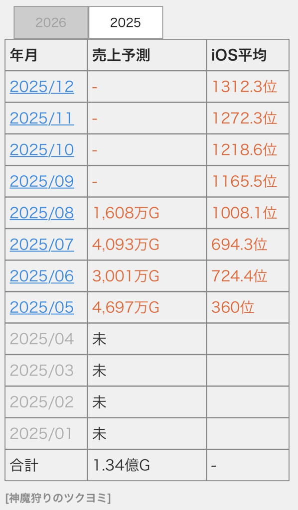この売り上げからどれだけ貰えるか知らないけど例え3割だとしても白猫より遥かに稼いでいる